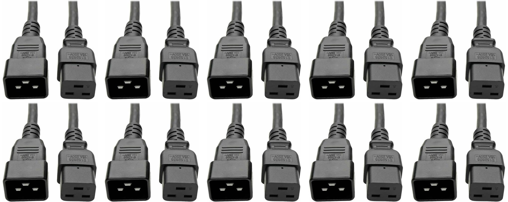 Connect C19 receptacle to computer, server or other devices and plug C20 connector into a PDU or UPS in a data center. Extend the length of an existing power cord for more flexibility. This heavy duty 12 AWG power cord is fully molded for durability. UL and cUL listed. All relevant materials are complied with RoHS and REACH directive. 10 Pack.