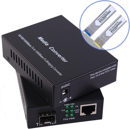 RiteAV - (2-PACK) 1.25G Media Converter, SFP Slot, with a SFP Module, SMF, 1550-nm, 80-km