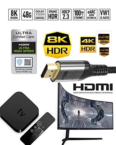 - Äkta 10k 8k HDMI-kabel: HDMI officiellt certifierad helt kompatibel med HDMI-forumets strikta krav som specificeras i HDMI. Den certifierade uppgraderade HDMI 2.1-kabeln med 48 Gbps bandbredd, supportupplösning upp till 7680 x 4320, uppdateringsfrekvens upp till 10 K 8 K@60 Hz, 4K@144 Hz 4K@120Hz 2K @165Hz 144Hz 1080P, överföringshastighet upp till 48 Gbps ultrahög hastighet, HDCP 2 &2.3, Dynamisk HDR framtidssäker för din HDMI behöver i många år framöver. Bakåtkompatibel med HDMI 2.0 HDMI1.4.