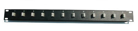 This 1U patch panel fits standard 19" racks. It is loaded with 12 x LC Multimode Female to Female feedthroughs.