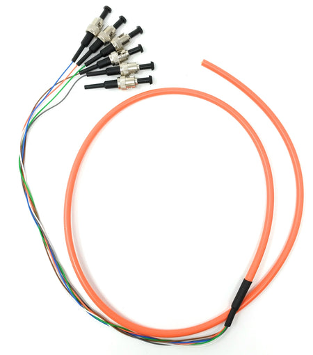 6 Strand Multimode OM1 62.5/125 ST-UPC Fiber Pigtail, 1 Meter