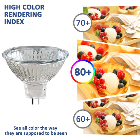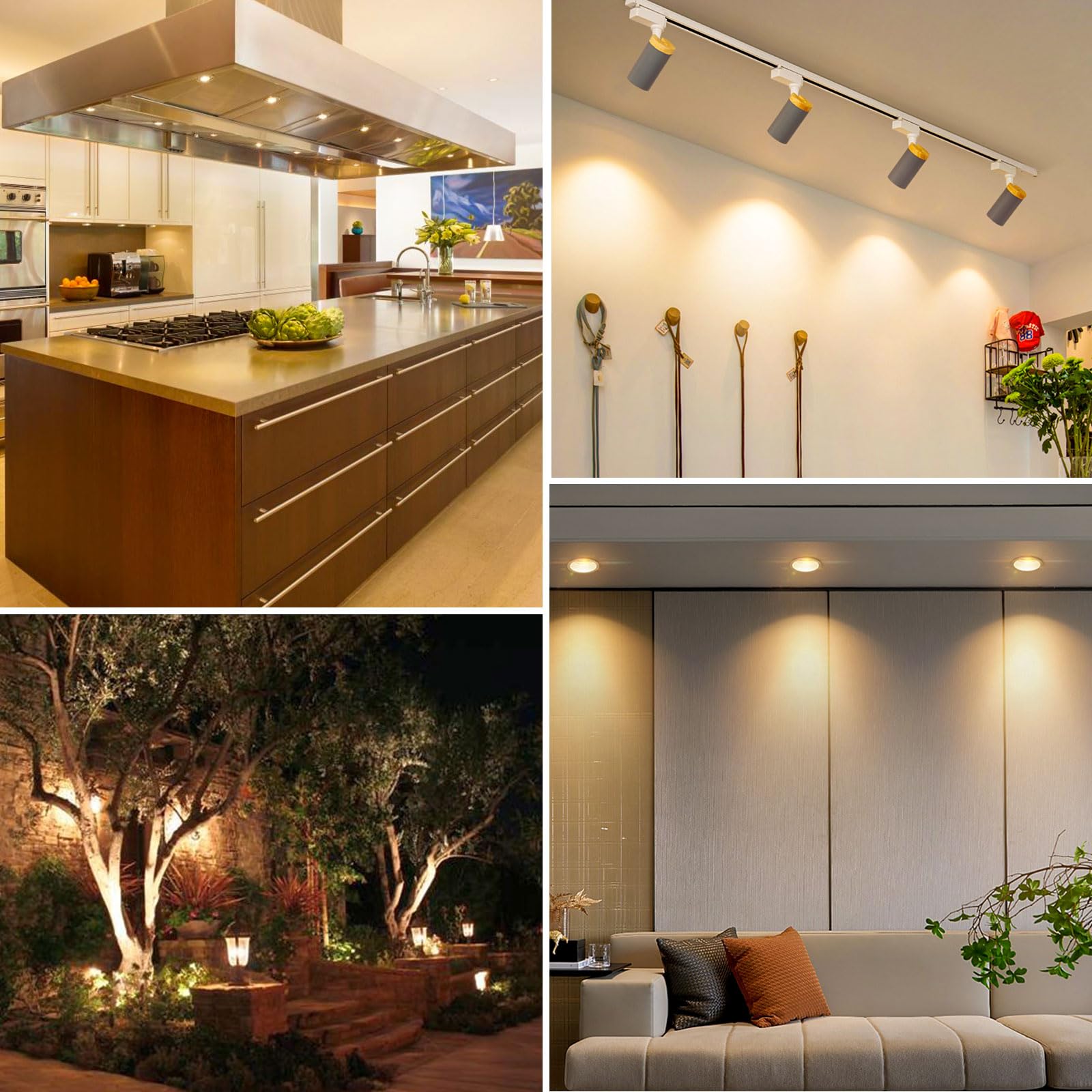 - Dimbar: MR16-halogenlamporna är dimbara från 0 % till 100 %. Starta omedelbart utan dröjsmål. CRI>80. Ingen strobe, ingen strobe, ingen UV-strålning, skyddar dina ögon bättre.
