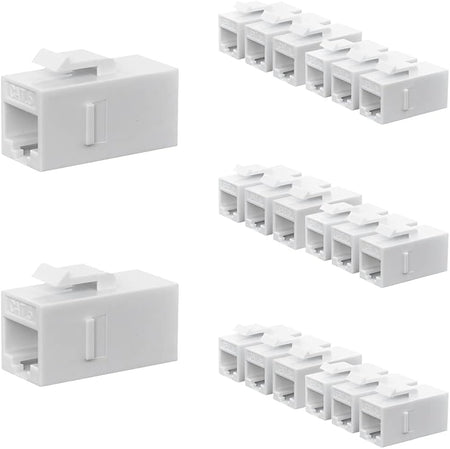 This Cat6 keystone coupler is made of high quality PVC material, which has good heat conductivity and low thermal resistance. It does not conduct electricity and is safe to use. The coupler is easy to install and can be used to connect two Cat5e or Cat6 Ethernet network cables. It is compatible with all standard keystone wall plates and blank patch panels. The gold-plated connector ensures a high-quality connection and is future-proof for 10-Gigabit Ethernet. The coupler is perfect for voice, home networking, home office, video, and more DIY projects.