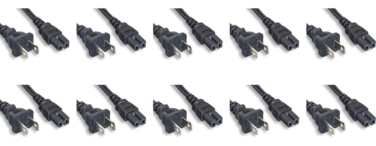 RiteAV - (10 Pack) Black | 6ft Polarized NEMA 1-15P to Polarized IEC 60320 C7, 18AWG, 10A, 125V, for Small Appliances, Laptop Power Adapters