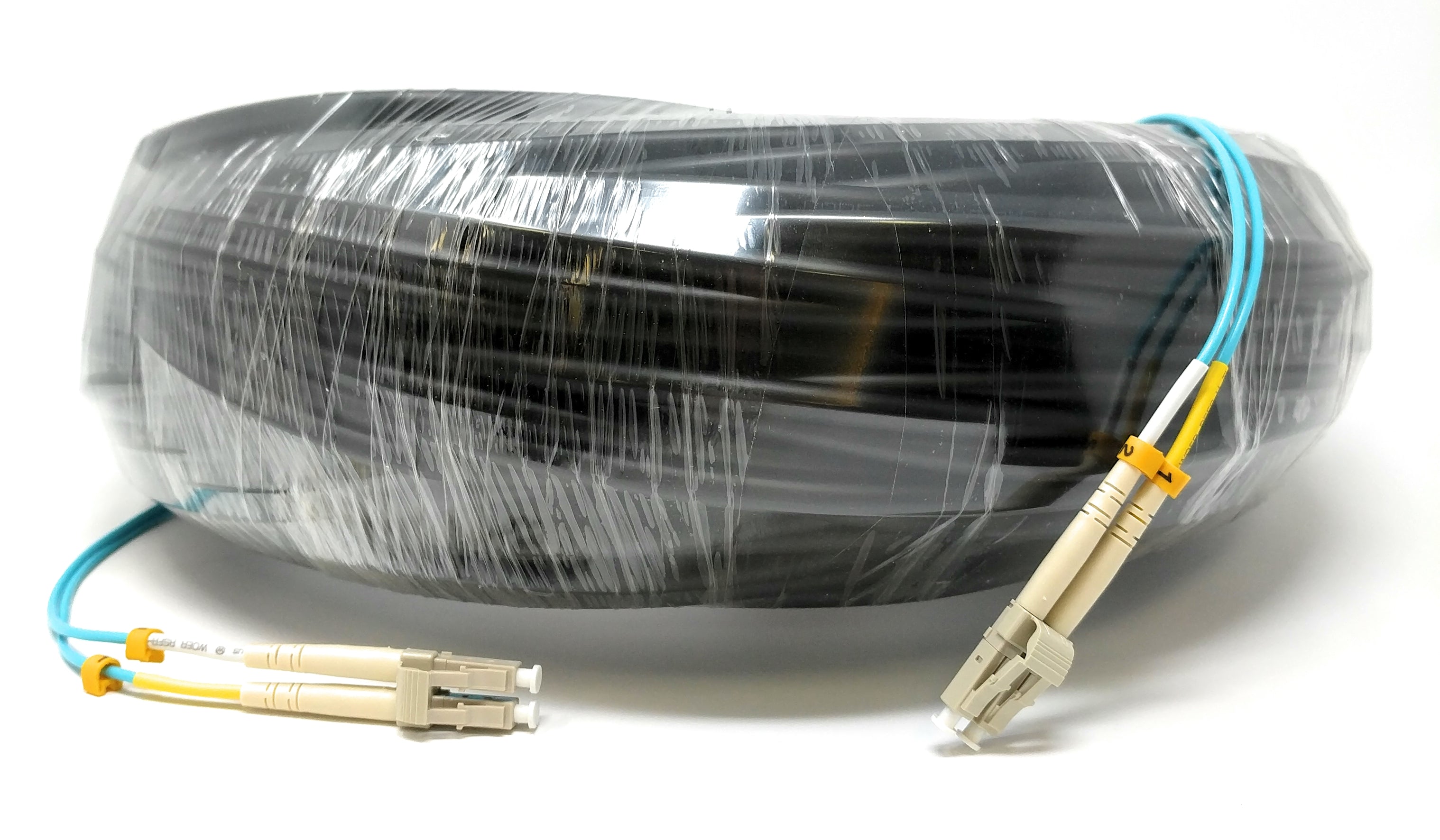 Our 2 strand Cable is UV Rated, Indoor/Outdoor, Black Jacket with approximately 12" breakouts on both ends and terminated with LC Connectors.