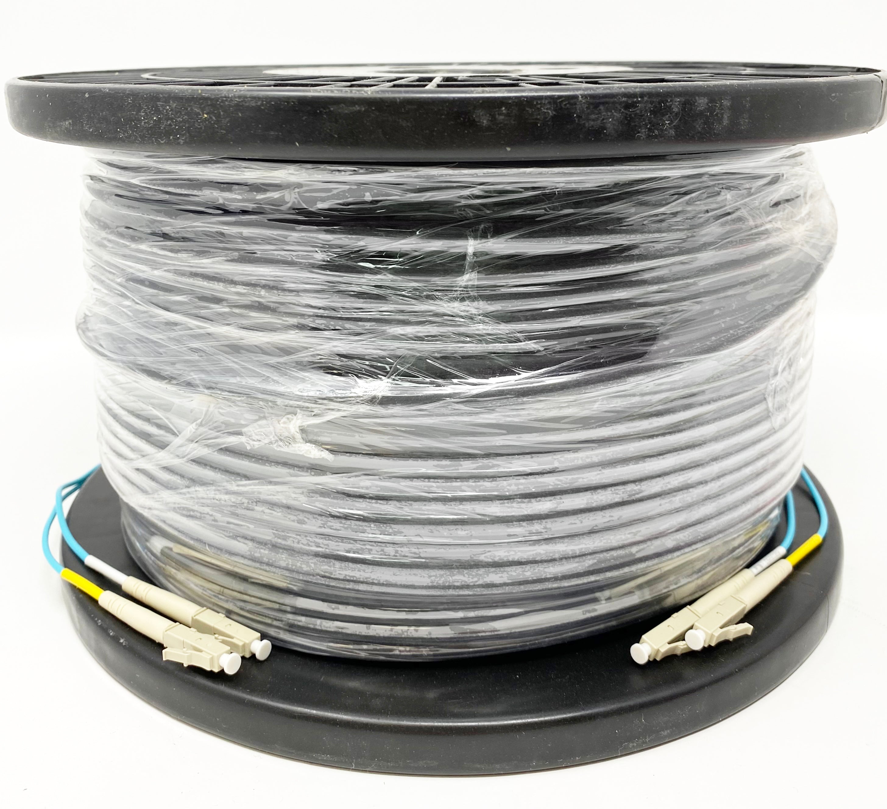 Our 2 strand Cable is UV Rated, Indoor/Outdoor, Black Jacket with approximately 12" breakouts on both ends and terminated with LC Connectors.