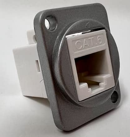 Cat 6 D Series Chassis Panel Mount Connector Pass Through Solderless Bulkhead Coupler, Silver Metal Housing/White Cat 6 [2 Pack]