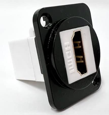 HDMI D Series Chassis Panel Mount Connector Pass Through Solderless Bulkhead Coupler, Black Metal Housing/White HDMI