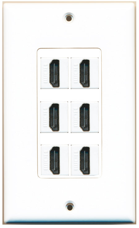 RiteAV - 6 Port Hdmi Decorative Keystone Wallplate Single Gang (White)