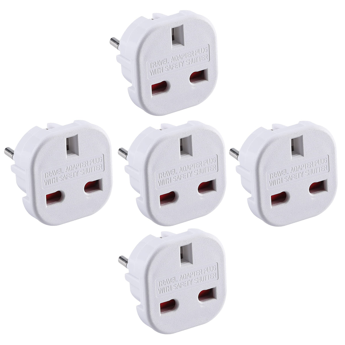 Förpackning med 5 reseadaptrar | UK till europeisk kontaktadapteromvandlare (Euro typ C, E, F) EU-kontakter för resor till Italien Kap Verde Polen Spanien turkiska Grekland Bulgarien med mera