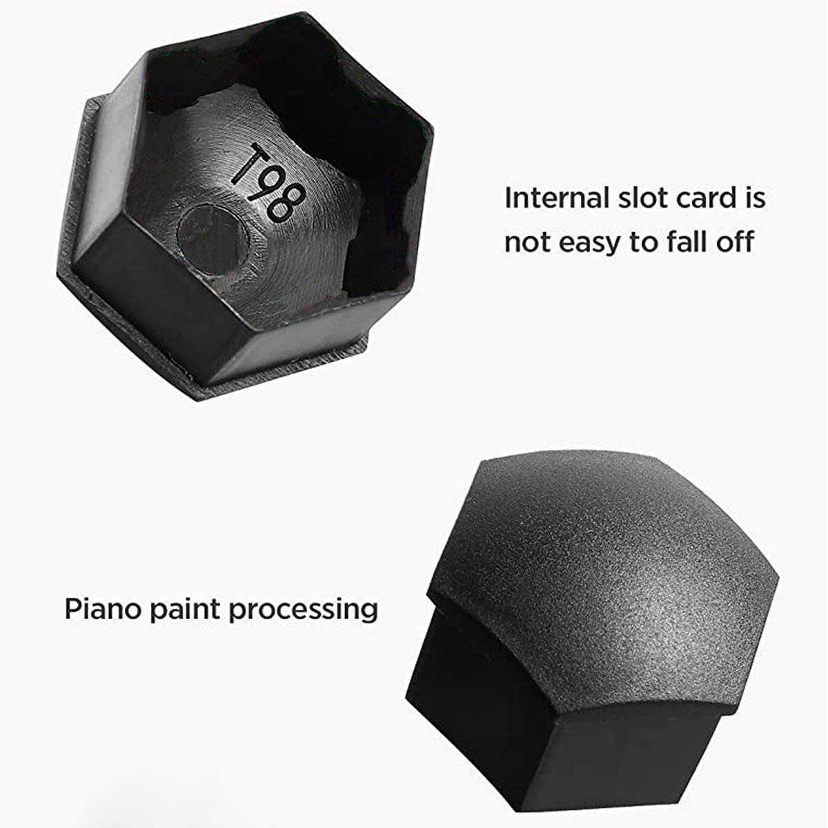 - 5. Paketet innehåller: 20 st svarta luggmutterskydd + installationsverktyg. Vänligen kontakta oss om du har frågor.