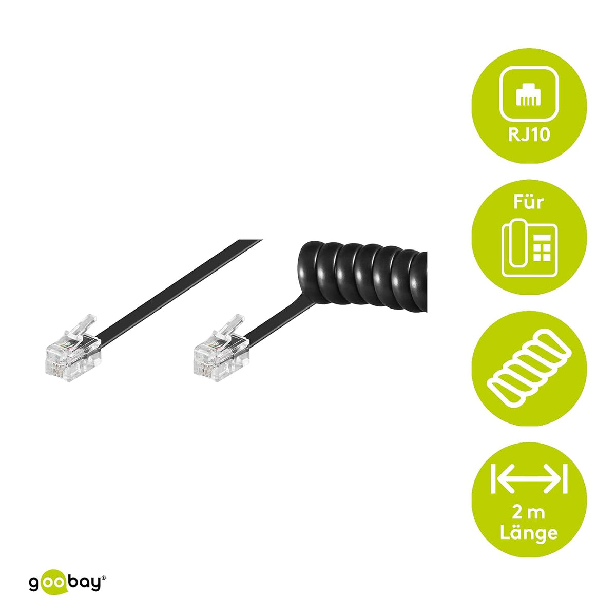 - Anslutningstyp 1: RJ10-kontakt (4P4C); Anslutningstyp 2: RJ10-kontakt (4P4C); kabeltyp: platt spiralkabel; kabellängd: 2 m; svart