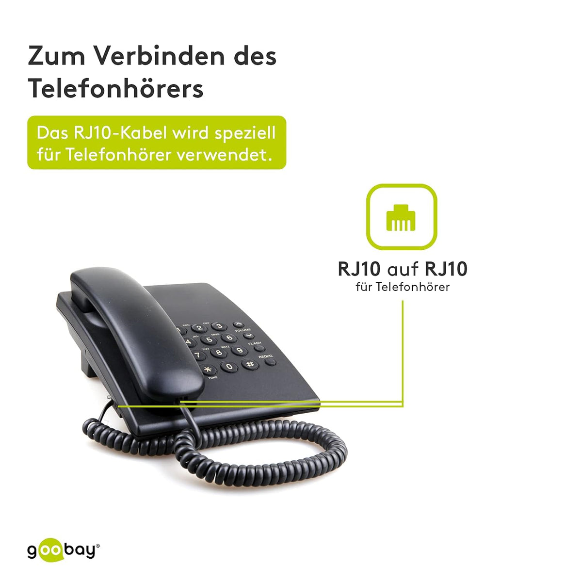 - Platt spiralformad kabel för korrekt signalöverföring mellan telefon och hörlurar med två RJ10-modulkontakter