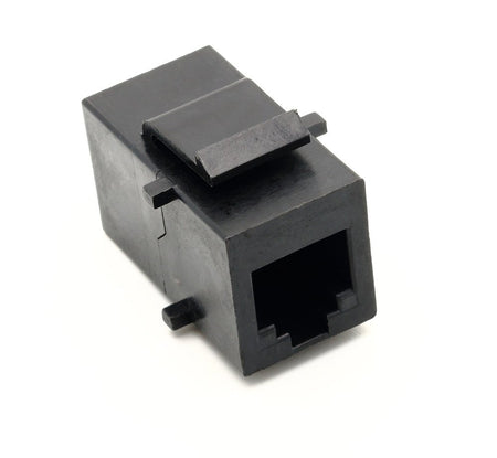 RiteAV Black RJ11/RJ12 Phone Keystone Jack Female to Female are the same on the front and back, so you can connect your cabling to them in no time. Simply plug your terminated cables into both sides of the plate the same way. No tools are required. Theyre universally designed to easily fit standard-sized brand name keystone blank wall plates and fit seamlessly into all RiteAV Blank Wall Plates as well. Our RJ11/RJ12 Keystone Couplers are versatile, since they can also be used in surface mount boxes and patch panels that have a standard-sized opening. RiteAV Keystone Couplers are removable to allow for easy upgrades or plate re-configurations in the future. The sturdy construction of the couplers ensures a long service life and a simple, affordable way to keep your cables hidden. They also provide a neat, convenient way to extend cables that are already in place, without the need for relocating them. This discreet solution enables you to route your cabling through the walls and results in a clean, professional look behind wall mounted televisions, monitors, projectors and entertainment centers in both residential (home theater) and commercial (classroom, boardroom, factory floor, recording studio, etc.) settings. We offer a variety of couplers in an assortment of colors that all match our Blank Wall Plates to suit all of your A/V requirements.
