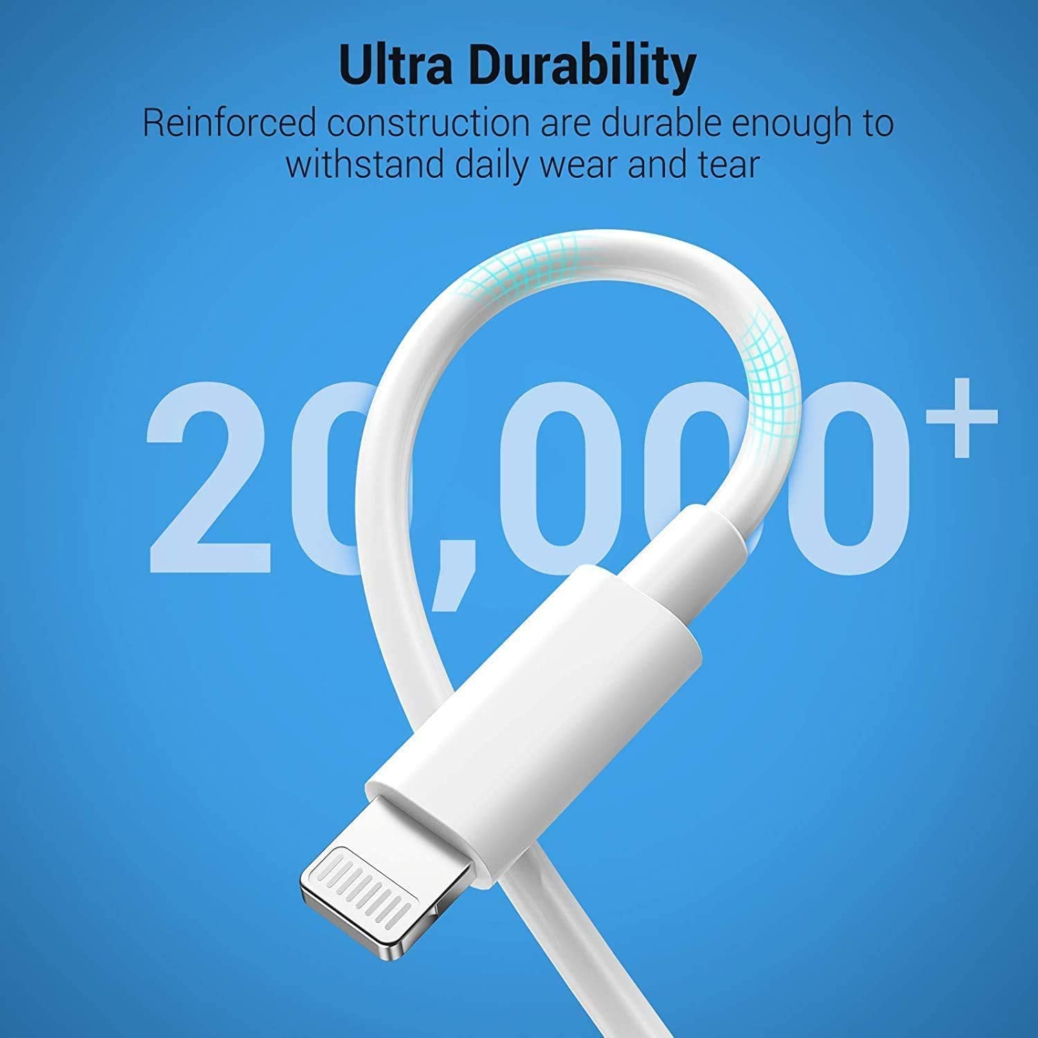 - ⚡【20 W snabbladdning och hållbarhet】- 2 m typ C till lightning-sladd, laddar iPhone 12 upp till 50 % på bara 30 minuter, vilket sparar mer än 1 timme för dig, jämfört med 5 W ursprungliga laddningskabel. Håller 12 gånger längre än andra kablar och testas för att motstå över 20000+ böjning i strikta laboratorietester. Kabeln har extremt hög motståndskraft mot delning och brott