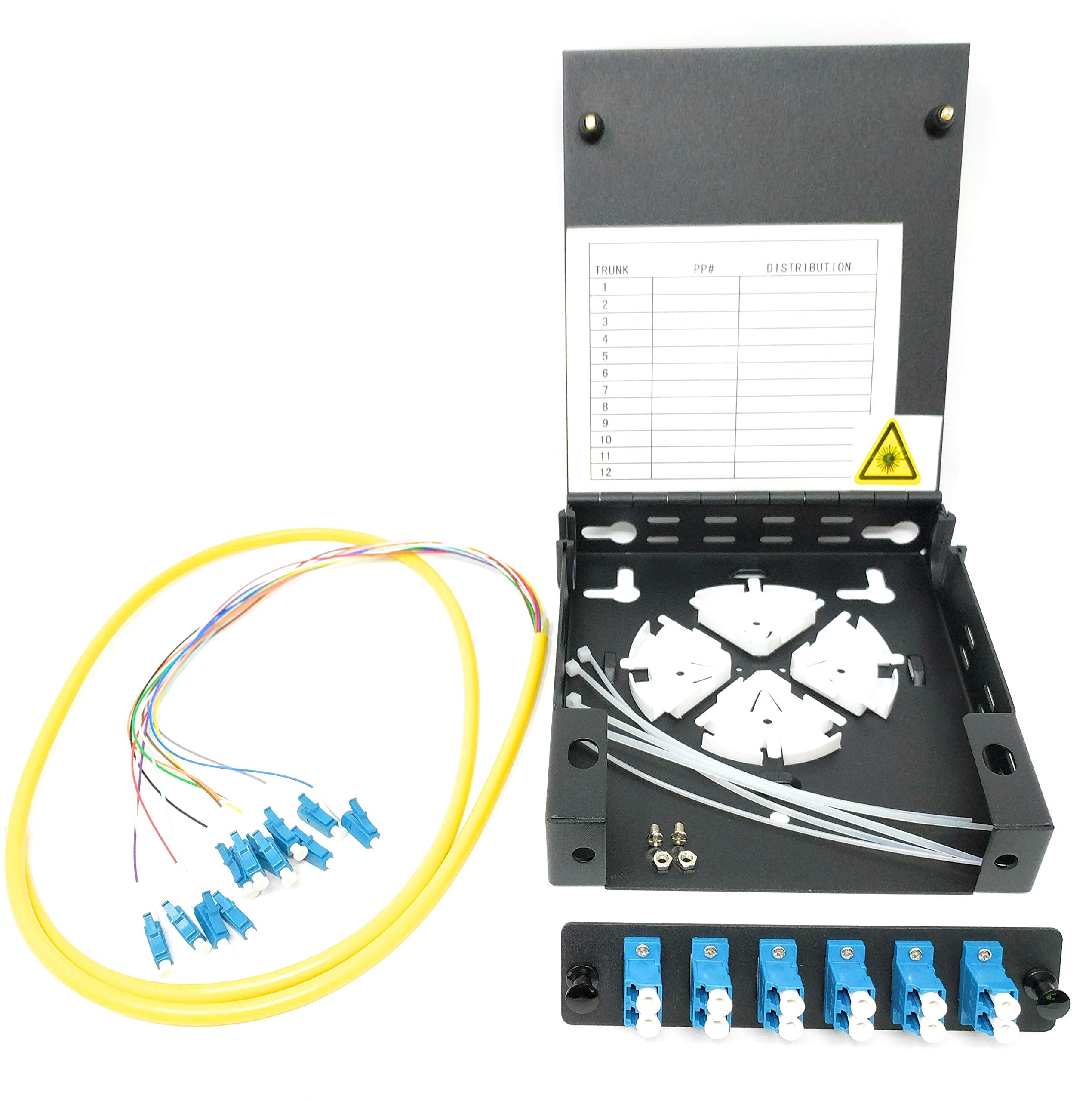 Ultra Spec Cables 12 Port Wall Mount Fiber Enclosure with Spool Singlemode LC-UPC Kit (Includes a 1 Meter 12 Strand LC-UPC Pigtail and 6 Port Duplex LGX Loaded Panel for Splice