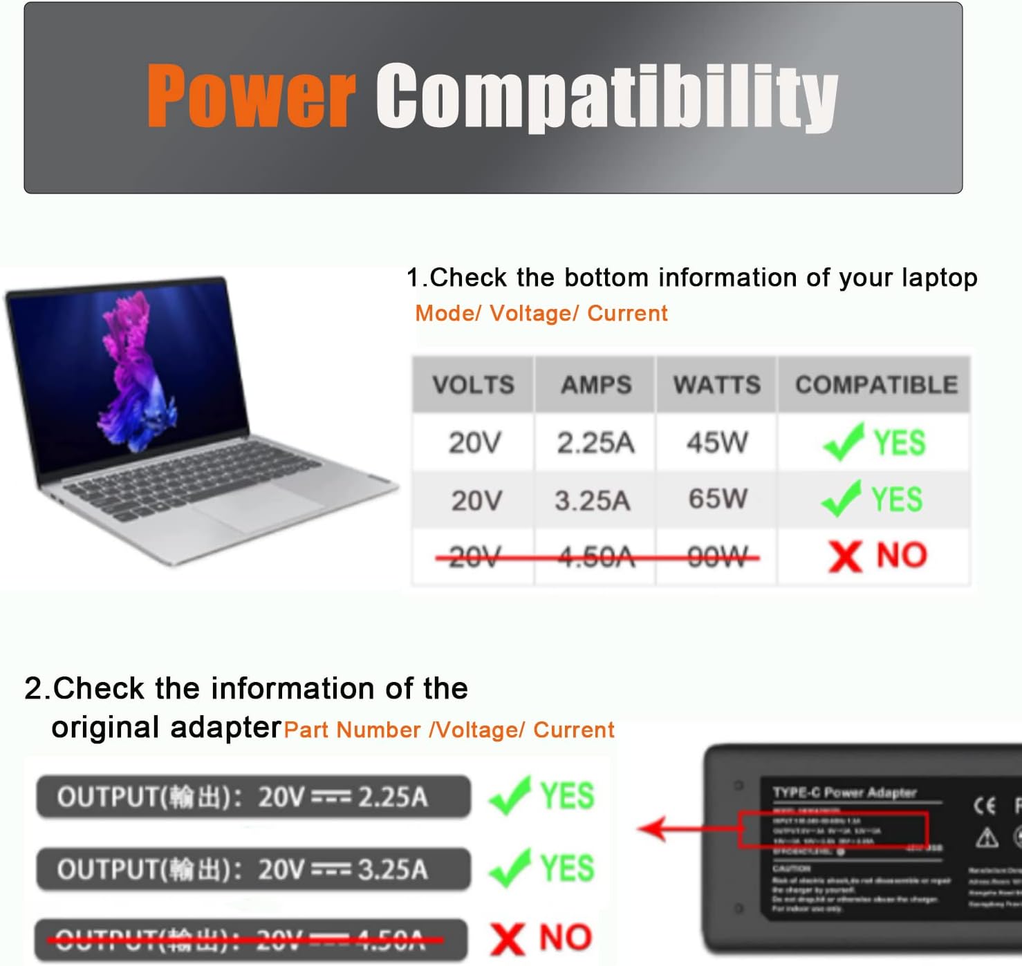 - 💖【Specifikation】Utgång 2,25 ~ 3,25 A, ingång 20 V, effekt: 45–65 W max; anslutningstyp: USB typ C-kontakt; Skick: 100 % helt ny, paketet innehåller 1 PC-strömförsörjning + likströmskabel. Denna 65 W USB-C-laddare är utformad för ASUS-, Lenovo Thinkpad-, HP-bärbara datorer, Mac Book, Huawei, Nintendo Switch och Power Delivery-kompatibla varumärkes-smartphones.