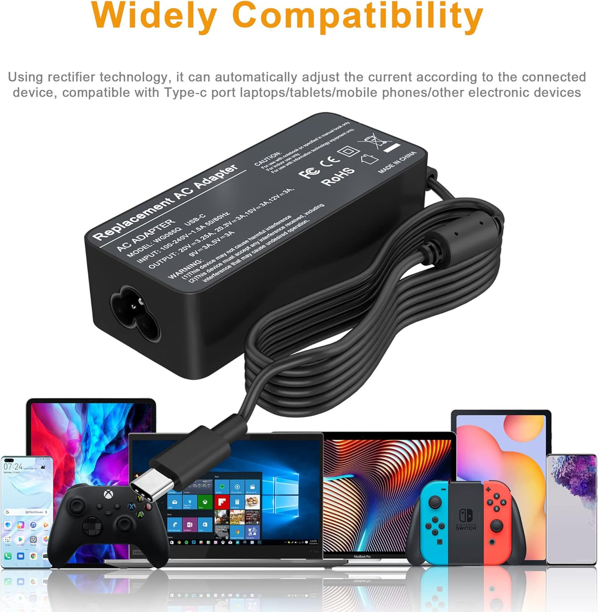 - Kompatibel med: HP laptop 65 watt USB C AC-adaptrar är för ASUS bärbar dator, Lenovo IdeaPad/Yoga, Acer, HP bärbar dator, Samsung Galaxy Tab A8, samsung surfplatta, MacBook Pro/Air, i-Pad Pro, Huawei Matebook, Spectre, Dell Xiaomi Air, Google, Nintendo Switch TV-dockning och andra elektroniska enheter med typ-C-gränssnitt