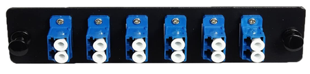 Our LGX Compatible LC Adapter Panel, 6 Ports, Loaded w/6 LC Duplex Singlemode Adapters, provides connections for 6 LC jumpers. The panel can be used as a pass through or to connect LC assemblies together. Provides a simplified method of routing circuits with an orderly appearance. Designed for Quick Field Termination, which saves time and money. Constructed to fit blank panels and rack mount enclosures. Black powder coated steel construction. Lifetime Warranty. Also available in SC, ST, FC and MPO configurations. 100% Tested and Approved.
