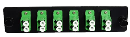 Our LGX Compatible LC Adapter Panel, 6 Ports, Loaded w/6 LC Duplex APC Multimode Adapters, providing connections for 6 LC jumpers. The panel can be used as a pass through or to connect LC assemblies together. Provides a simplified method of routing circuits with an orderly appearance. Designed for Quick Field Termination, which saves time and money. Constructed to fit blank panels and rack mount enclosures. Black powder coated steel construction. Lifetime Warranty. Also available in SC, ST, FC and MPO configurations. 100% Tested and Approved.