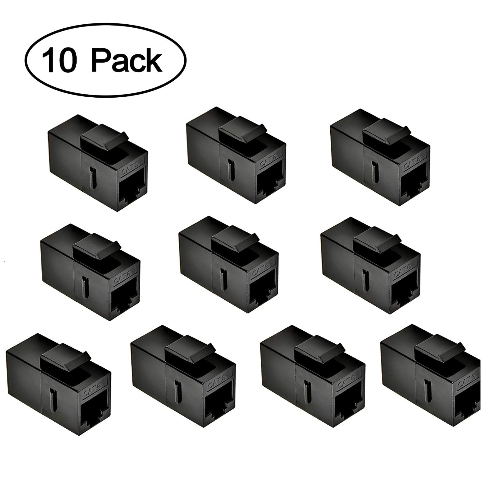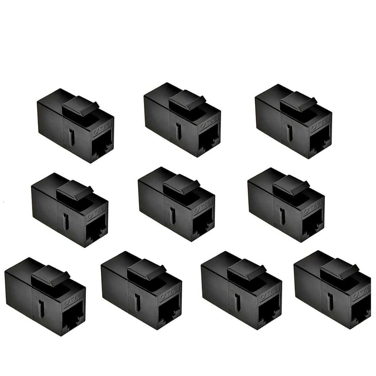 RJ45 koppling CAT6 Keystone Jack F till F rak oskärmad In-Line Cat 6 Ethernet-modul (10 st, svart)