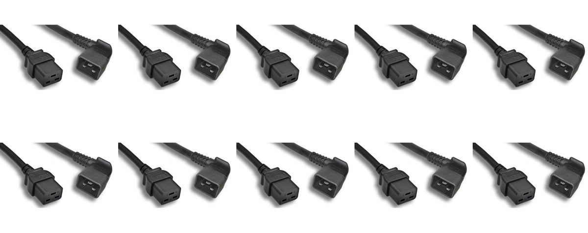 RiteAV - Heavy Duty 12 AWG Black Color C19 / Right Angled C20 Universal Jumper Power Cord (Black (10ft) 3 Meter) (10 Pack)