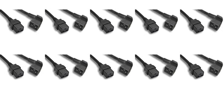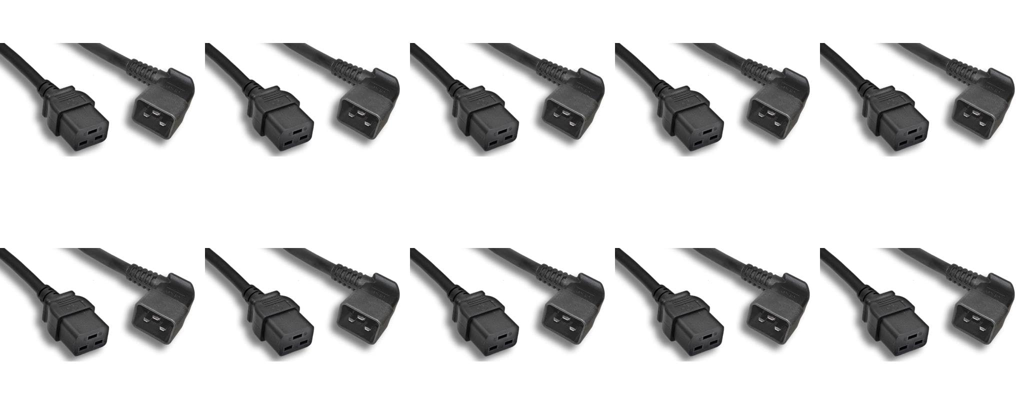 RiteAV - Heavy Duty 12 AWG Black Color C19 / Right Angled C20 Universal Jumper Power Cord (Black (3ft) 1 Meter) (10 Pack)