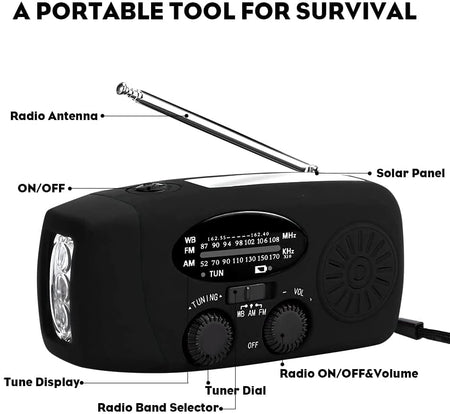 - Detta är en självförsörjande nödradio som du och din familj kan lita på när som helst, var som helst, i alla väder. Det kan vara en väderradio, en 3-LED ficklampa eller en powerbank. Erbjuder ett urval av självladdnings-, solenergi- och externa laddningsalternativ.