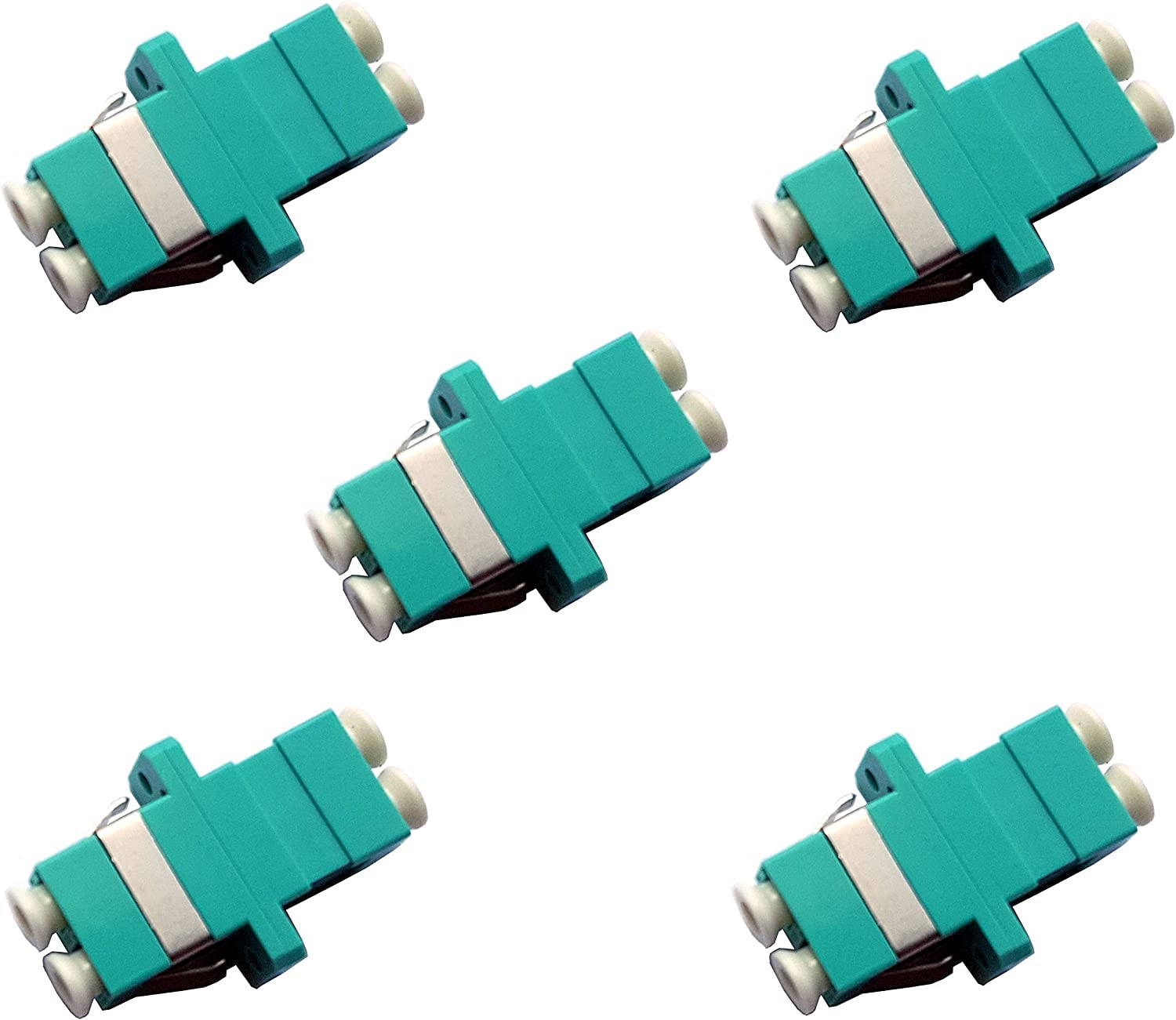 Fiber Optic Cable Adapter-Coupler LC-LC Duplex [Aqua]-Multimode 10Gb OM3-OM4 5 Pack