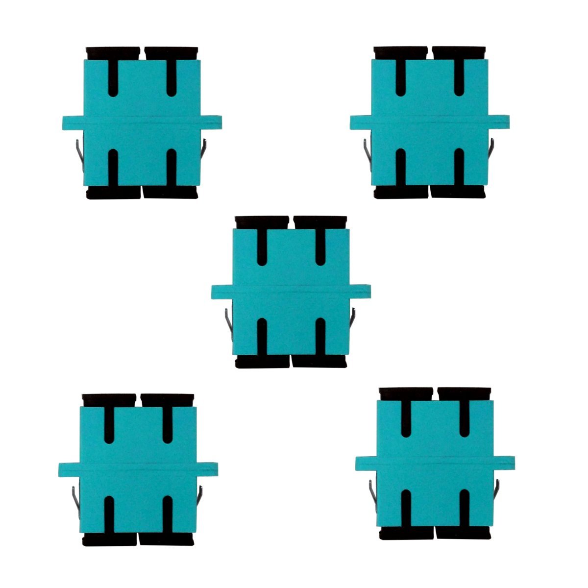 Fiber Optic Cable Adapter Coupler SC-SC Duplex 10Gb/40Gb [Aqua] Multimode 5 Pack