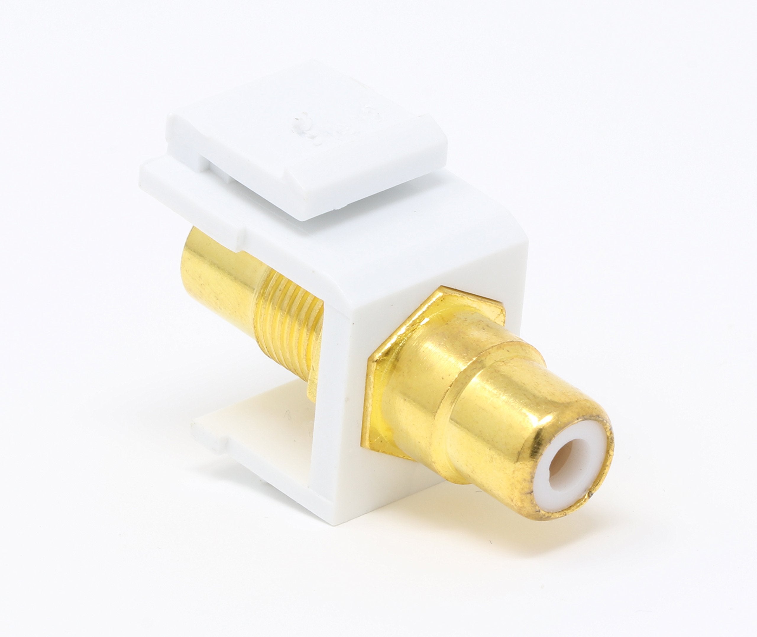 RiteAV Female to Female RCA Keystone Couplers are the same on the front and back, so you can connect your RCA Cabling to them in no time. Simply plug your RCA Cables into both sides of the plate the same way. No tools are required. Theyre universally designed to easily fit standard-sized brand name keystone blank wall plates and fit seamlessly into all RiteAV Blank Wall Plates as well. Our RCA Keystone Couplers are versatile, since they can also be used in surface mount boxes and patch panels that have a standard-sized opening. RiteAV Keystone Couplers are removable to allow for easy upgrades or plate re-configurations in the future. The sturdy construction of the couplers ensures a long service life and a simple, affordable way to keep your cables hidden. They also provide a neat, convenient way to extend cables that are already in place, without the need for relocating them. This discreet solution enables you to route your cabling through the walls and results in a clean, professional look behind wall mounted televisions, monitors, projectors and entertainment centers in both residential (home theater) and commercial (classroom, boardroom, factory floor, recording studio, etc.) settings. We offer a variety of couplers in an assortment of colors that all match our Blank Wall Plates to suit all of your A/V requirements.