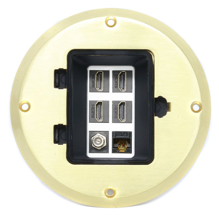 RiteAV - 4 Port HDMI 1 Coax Cable TV- F-Type 1 Cat6 Ethernet Floor Box - Gold