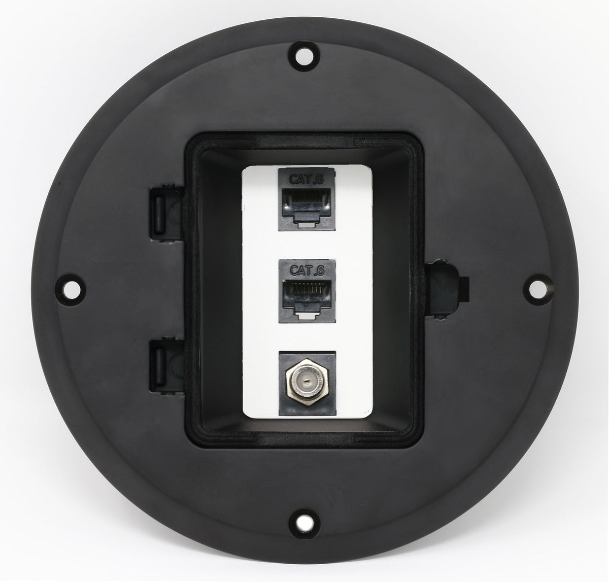 RiteAV 2 Port Cat6 Ethernet 1 Port Coax Cable TV Floor Box - Black