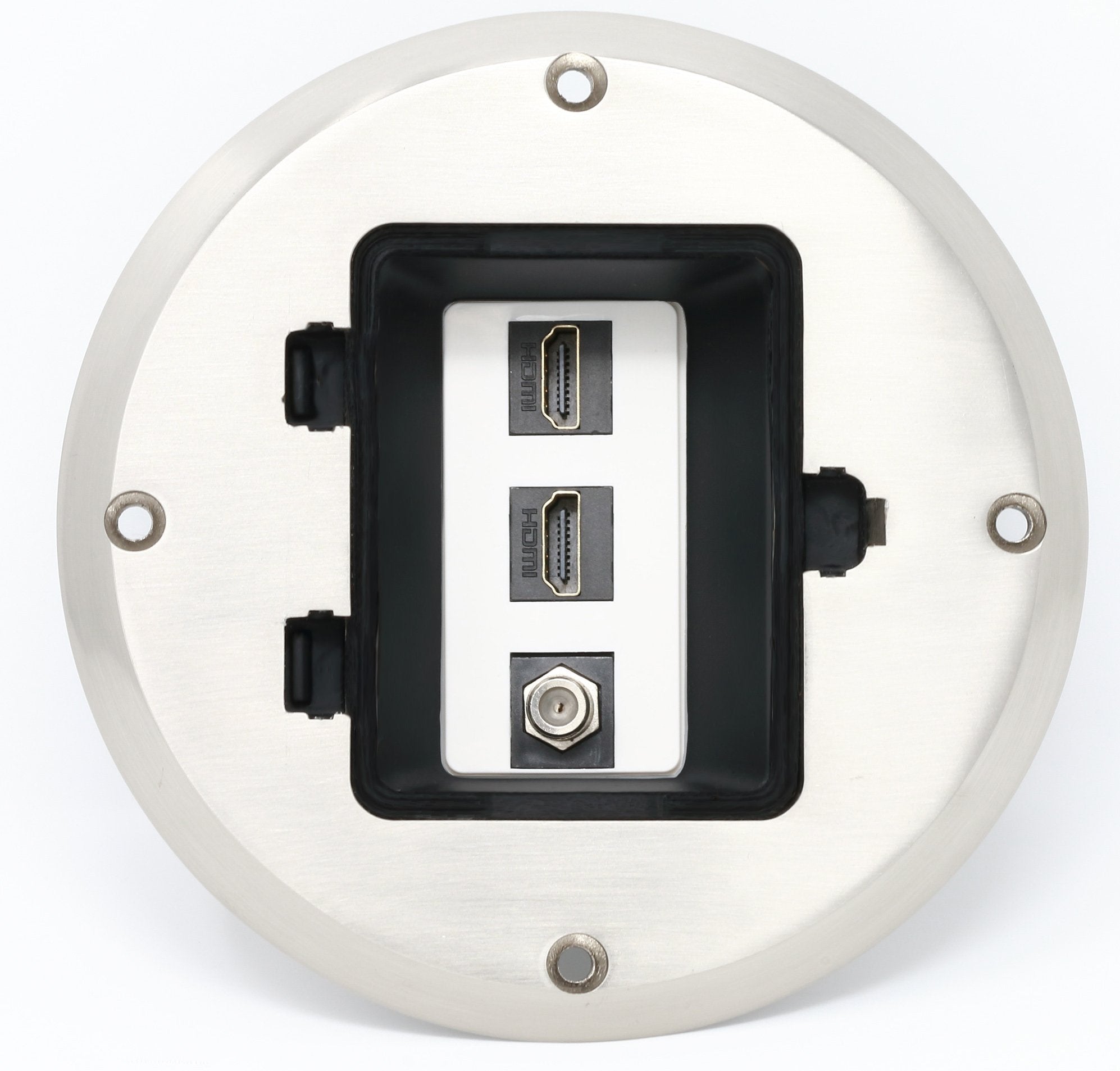 RiteAV - 2 Port HDMI 1 Coax Cable TV- F-Type Floor Box - Stainless Steel