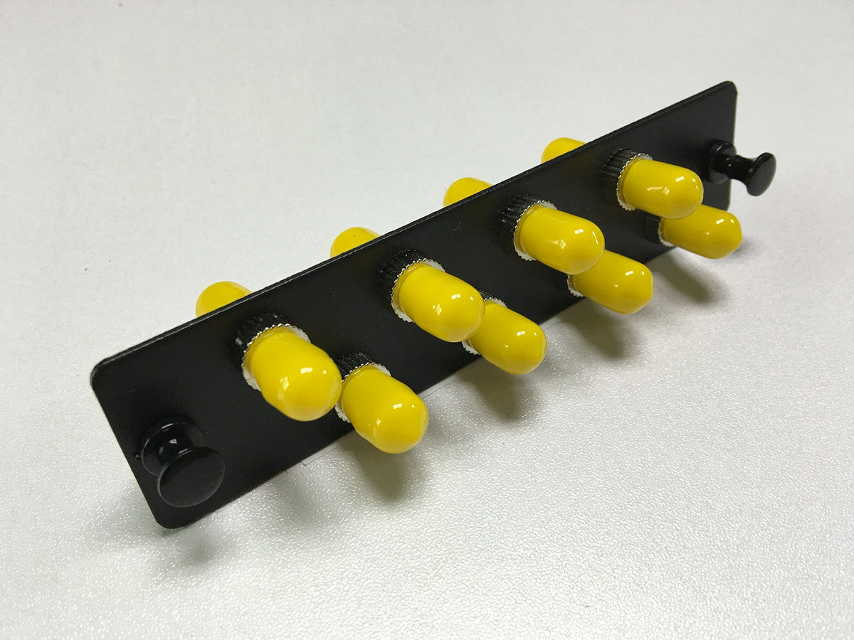 RiteAVs LGX Compatible ST Simplex Singlemode Fiber Adapter Panel is loaded with 8 x ST Simplex Singlemode Adapters, providing connections for 8 ST jumpers. The panel can be used as a pass through or to connect ST assemblies together. Provides a simplified method of routing circuits with an orderly appearance. Designed for Quick Field Termination, which saves time and money. Constructed to fit blank panels and rack mount enclosures. Black powder coated steel construction. Lifetime Warranty. Also available in LC, SC, FC and MPO configurations. 100% Tested and Approved.