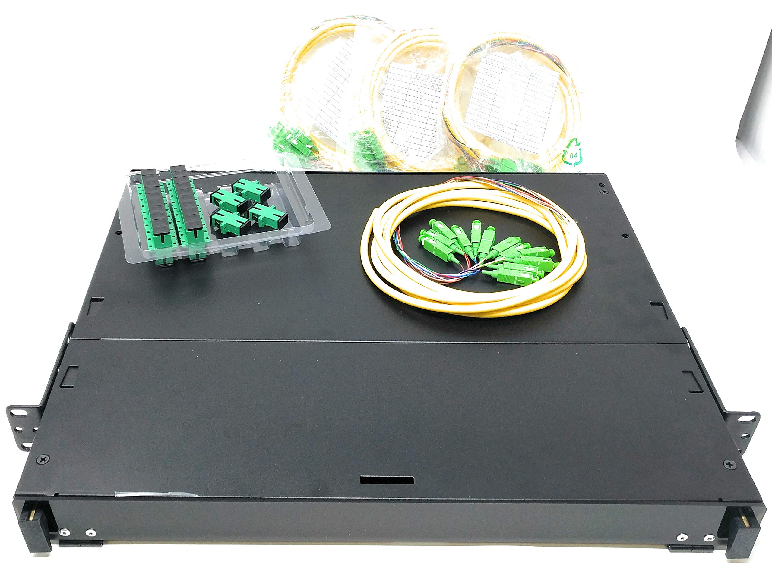 Ultra Spec Cables 1U 24 Port 19" Rack Mount Fiber Enclosure Singlemode SC-APC Kit (Includes 4 x 3 Meter 12 Strand SC-APC Pigtails and 24 x SC-APC Adapters) for Splice