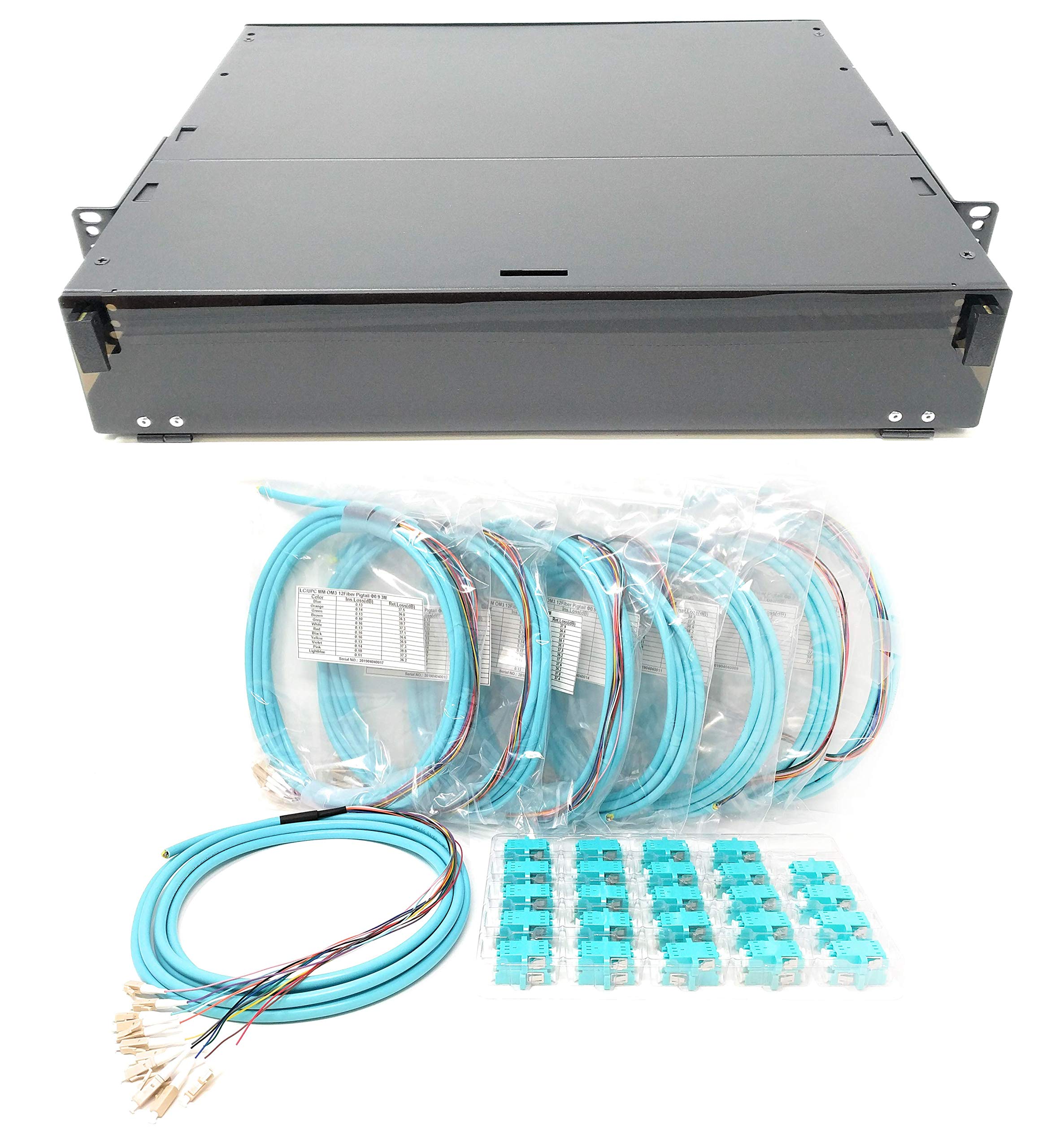 Ultra Spec Cables 2U 48 Port 19" Rack Mount Fiber Enclosure OM3 10Gb LC-UPC Kit (Includes 8 x 3 Meter 12 Strand LC-UPC Pigtails and 48 x LC-UPC Adapters) for Splice