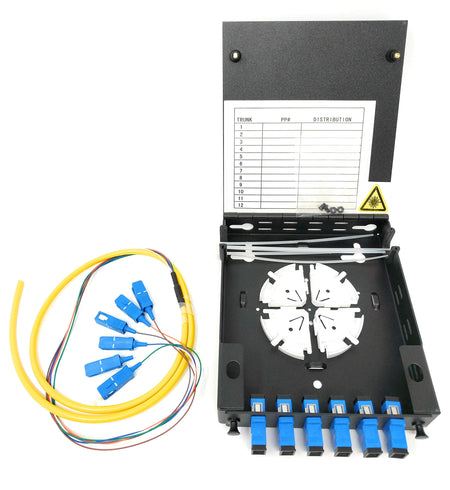 Ultra Spec Cables 6 Port Wall Mount Fiber Enclosure with Spool Singlemode Simplex SC-UPC Kit (Includes a 1 Meter 6 Strand SC-UPC SM Pigtail and 6 Port SC-UPC Simplex LGX Loaded Panel for Splice