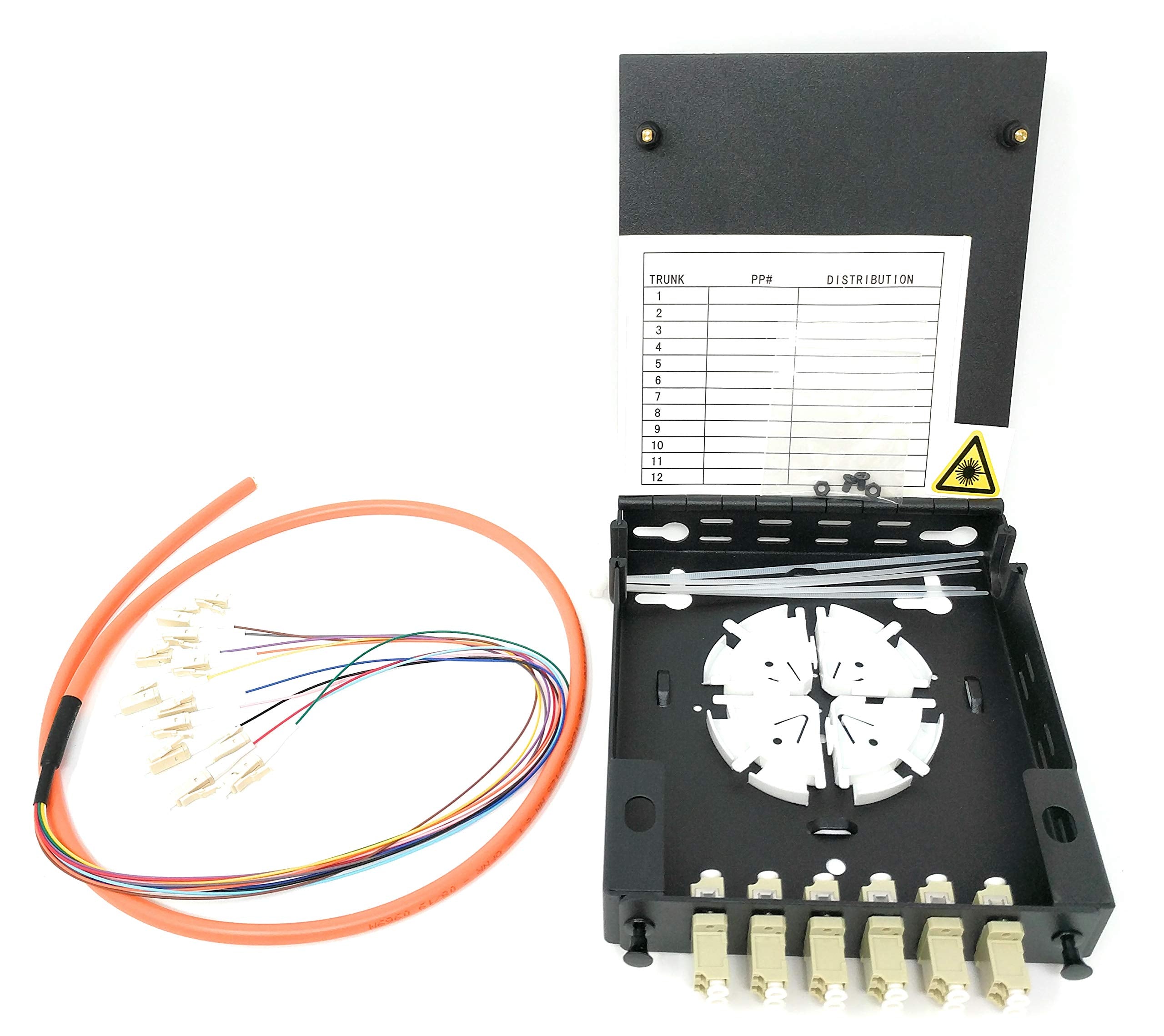 Ultra Spec Cables 6 Port Wall Mount Fiber Enclosure with Spool Multimode OM1 Simplex LC-UPC Kit (Includes a 1 Meter 12 Strand LC-UPC MM Pigtail and 6 Port LC-UPC Duplex LGX Loaded Panel for Splice