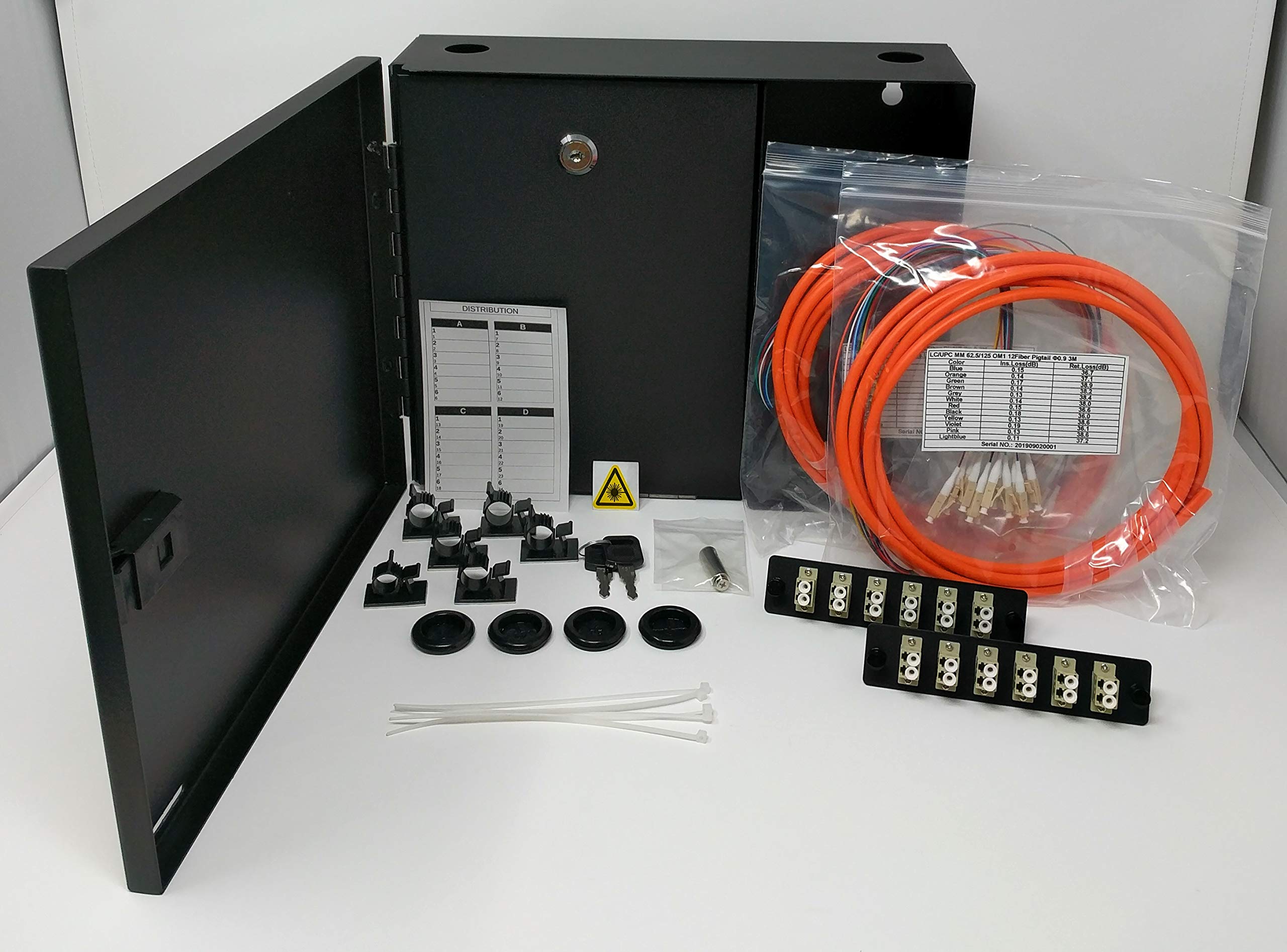 Ultra Spec Cables 2 LGX Panel Lockable Wall Mount Fiber Enclosure Kit, Includes 2 x Loaded OM1 Multimode Duplex LC-UPC LGX Panels and 2 x 3M 12 Strand OM1 LC-UPC Pigtails for Splice