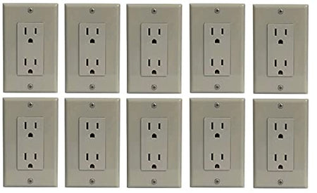 RiteAV 15A Electrical Duplex Receptacle Wall Outlet Plate 1 Gang Decorative - Gray - 10 Pack
