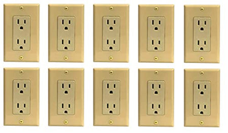 RiteAVs Single Gang 15A Duplex Receptacle Electrical Wall Plate is constructed from high-quality materials that will provide a hassle-free service life after a quick and simple installation. The ready-to-install plate includes a self-grounding receptacle, which has the option of both push-in or terminal screw wiring options, a stylish, decorative surround (or cover plate) which is color-matched to the receptacle for a perfect look and the sturdy hardware to mount both pieces securely. The heads of the mounting screws used with the cover plates are painted the respective color of the other components for a seamless appearance. The plates are UL Listed and suitable for both residential and commercial use and with the coordinating color options, they blend better with walls, backsplashes, trim or room decor. Our 10 Pack is perfect for contractors, builders, interior designers or the DIYers that are remodeling a home and want their outlets to match or complement paint/finishes. The 10 pack is a smart, economical choice when needing to purchase multiple receptacles as it saves you money buying in bulk as well as numerous trips to the hardware store. RiteAV offers a wide variety of A/V Plates to suit any connection requirement, so be sure to check out our entire catalog of products. Please note that we recommend that a certified electrician perform the installation for any line-voltage related work and that all National Electrical Codes are followed during installation.