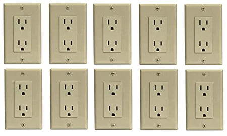 RiteAVs Single Gang 15A Duplex Receptacle Electrical Wall Plate is constructed from high-quality materials that will provide a hassle-free service life after a quick and simple installation. The ready-to-install plate includes a self-grounding receptacle, which has the option of both push-in or terminal screw wiring options, a stylish, decorative surround (or cover plate) which is color-matched to the receptacle for a perfect look and the sturdy hardware to mount both pieces securely. The heads of the mounting screws used with the cover plates are painted the respective color of the other components for a seamless appearance. The plates are UL Listed and suitable for both residential and commercial use and with the coordinating color options, they blend better with walls, backsplashes, trim or room decor. Our 10 Pack is perfect for contractors, builders, interior designers or the DIYers that are remodeling a home and want their outlets to match or complement paint/finishes. The 10 pack is a smart, economical choice when needing to purchase multiple receptacles as it saves you money buying in bulk as well as numerous trips to the hardware store. RiteAV offers a wide variety of A/V Plates to suit any connection requirement, so be sure to check out our entire catalog of products. Please note that we recommend that a certified electrician perform the installation for any line-voltage related work and that all National Electrical Codes are followed during installation.