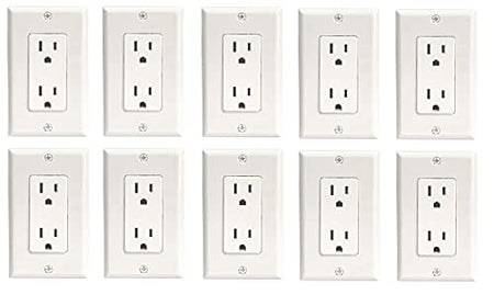 RiteAV 15A Electrical Duplex Receptacle Wall Outlet Plate 1 Gang Decorative - White - 10 Pack