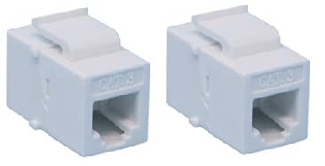 RiteAV RJ11-12 Phone White Keystone Jack Coupler Female to Female are the same on the front and back, so you can connect your cabling to them in no time. Simply plug your terminated cables into both sides of the plate the same way. No tools are required. Theyre universally designed to easily fit standard-sized brand name keystone blank wall plates and fit seamlessly into all RiteAV Blank Wall Plates as well. Our RJ11/RJ12 Keystone Couplers are versatile, since they can also be used in surface mount boxes and patch panels that have a standard-sized opening. RiteAV Keystone Couplers are removable to allow for easy upgrades or plate re-configurations in the future. The sturdy construction of the couplers ensures a long service life and a simple, affordable way to keep your cables hidden. They also provide a neat, convenient way to extend cables that are already in place, without the need for relocating them. This discreet solution enables you to route your cabling through the walls and results in a clean, professional look behind wall mounted televisions, monitors, projectors and entertainment centers in both residential (home theater) and commercial (classroom, boardroom, factory floor, recording studio, etc.) settings. We offer a variety of couplers in an assortment of colors that all match our Blank Wall Plates to suit all of your A/V requirements. This listing is for a 2 Pack.