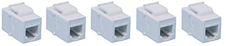RiteAV RJ11-12 Phone White Keystone Jack Coupler Female to Female are the same on the front and back, so you can connect your cabling to them in no time. Simply plug your terminated cables into both sides of the plate the same way. No tools are required. Theyre universally designed to easily fit standard-sized brand name keystone blank wall plates and fit seamlessly into all RiteAV Blank Wall Plates as well. Our RJ11/RJ12 Keystone Couplers are versatile, since they can also be used in surface mount boxes and patch panels that have a standard-sized opening. RiteAV Keystone Couplers are removable to allow for easy upgrades or plate re-configurations in the future. The sturdy construction of the couplers ensures a long service life and a simple, affordable way to keep your cables hidden. They also provide a neat, convenient way to extend cables that are already in place, without the need for relocating them. This discreet solution enables you to route your cabling through the walls and results in a clean, professional look behind wall mounted televisions, monitors, projectors and entertainment centers in both residential (home theater) and commercial (classroom, boardroom, factory floor, recording studio, etc.) settings. We offer a variety of couplers in an assortment of colors that all match our Blank Wall Plates to suit all of your A/V requirements. This listing is for a 5 Pack.