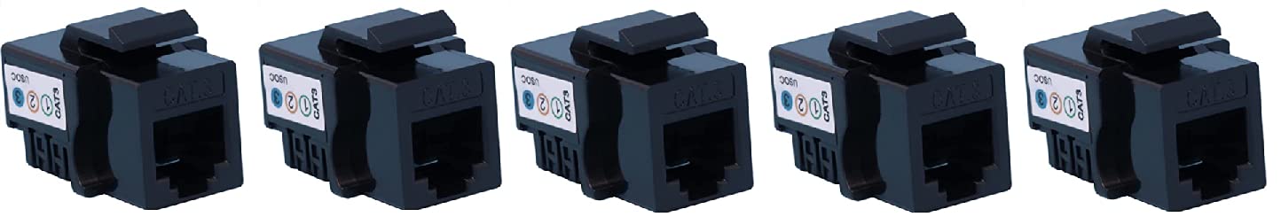 RiteAV RJ11 Phone Black Punchdown Type Keystone Jacks are easy to install since they include a color-coded, integrated wiring diagram, which yields a hassle-free termination. Terminated cables are plugged into the front of the jack and bare wire is punched down on the back of the 110-Type, 90 Degree Punchdown Block using a punchdown tool or IDC tool (not included). The snap-in dust cover/retention clip ensures a dependable, corrosion-free connection. The sturdy construction ensures a long service life and the fabrication delivers timeless style. The Cat3 multipurpose jacks are ideal for use with basic telephone installations, replacements and updating antiquated systems. They can also be used in low speed data network applications, which makes them even more adaptable. We offer a variety of Keystone Coupler Configurations, along with different styles and colors, so please check out RiteAVs full line of Wall Plate Components, Preconfigured Wall Plates that include the most popular inputs and the accompanying cables to connect it all together. The 5 pack is a smart, economical choice when needing to purchase multiple jacks since it saves you money buying in bulk as well as numerous trips to the hardware store.