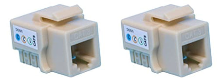 RiteAV RJ11 Phone Beige Punchdown Type Keystone Jacks are easy to install since they include a color-coded, integrated wiring diagram, which yields a hassle-free termination. Terminated cables are plugged into the front of the jack and bare wire is punched down on the back of the 110-Type, 90 Degree Punchdown Block using a punchdown tool or IDC tool (not included). The snap-in dust cover/retention clip ensures a dependable, corrosion-free connection. The sturdy construction ensures a long service life and the fabrication delivers timeless style. The Cat3 multipurpose jacks are ideal for use with basic telephone installations, replacements and updating antiquated systems. They can also be used in low speed data network applications, which makes them even more adaptable. We offer a variety of Keystone Coupler Configurations, along with different styles and colors, so please check out RiteAVs full line of Wall Plate Components, Preconfigured Wall Plates that include the most popular inputs and the accompanying cables to connect it all together. The 2 pack is a smart, economical choice when needing to purchase multiple jacks since it saves you money buying in bulk as well as numerous trips to the hardware store.