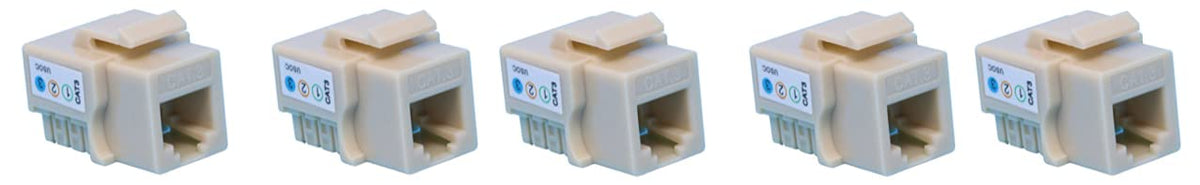 RiteAV RJ11 Phone Beige Punchdown Type Keystone Jacks are easy to install since they include a color-coded, integrated wiring diagram, which yields a hassle-free termination. Terminated cables are plugged into the front of the jack and bare wire is punched down on the back of the 110-Type, 90 Degree Punchdown Block using a punchdown tool or IDC tool (not included). The snap-in dust cover/retention clip ensures a dependable, corrosion-free connection. The sturdy construction ensures a long service life and the fabrication delivers timeless style. The Cat3 multipurpose jacks are ideal for use with basic telephone installations, replacements and updating antiquated systems. They can also be used in low speed data network applications, which makes them even more adaptable. We offer a variety of Keystone Coupler Configurations, along with different styles and colors, so please check out RiteAVs full line of Wall Plate Components, Preconfigured Wall Plates that include the most popular inputs and the accompanying cables to connect it all together. The 5 pack is a smart, economical choice when needing to purchase multiple jacks since it saves you money buying in bulk as well as numerous trips to the hardware store.