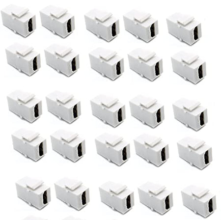 RiteAV Female to Female HDMI Keystone Couplers are the same on the front and back, so you can connect your HDMI Cabling to them in no time. Simply plug your HDMI Cables into both sides of the plate the same way. No tools are required. Theyre universally designed to easily fit standard-sized brand name keystone blank wall plates and fit seamlessly into all RiteAV Blank Wall Plates as well. Our HDMI Keystone Couplers are versatile, since they can also be used in surface mount boxes and patch panels that have a standard-sized opening. RiteAV Keystone Couplers are removable to allow for easy upgrades or plate re-configurations in the future. The sturdy construction of the couplers ensures a long service life and a simple, affordable way to keep your cables hidden. They also provide a neat, convenient way to extend cables that are already in place, without the need for relocating them. This discreet solution enables you to route your cabling through the walls and results in a clean, professional look behind wall mounted televisions, monitors, projectors and entertainment centers in both residential (home theater) and commercial (classroom, boardroom, factory floor, recording studio, etc.) settings. We offer a variety of couplers in an assortment of colors that all match our Blank Wall Plates to suit all of your A/V requirements. The 25 pack is a smart, economical choice when needing to purchase multiple jacks since it saves you money buying in bulk as well as numerous trips to the hardware store.